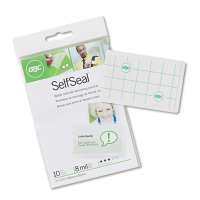 GBC3745685 SelfSeal Clear Laminating Pouches, 8 mil, 2 5/8 x 3 7/8, Wallet Size, 10/Pack By SWINGLINE
