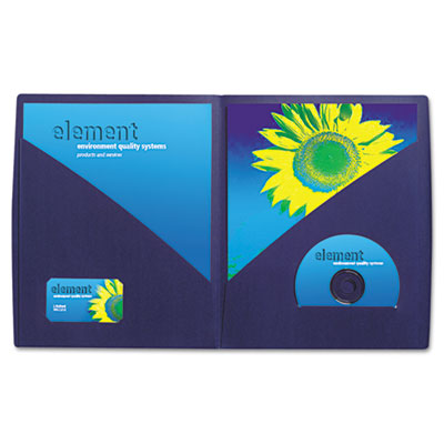 Stylish, designer two-pocket folder promises a modern, professional look. Large pockets secure multiple types of documents including CDs, business cards and tri-fold brochures. Premium ribbed paper with a rich texture provides a contemporary feel. Holds up to 60 sheets. Front Cover Color(s): Navy Blue; Back Cover Color(s): Navy Blue; Sheet Size: 11 x 8 1/2.