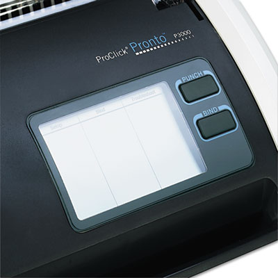 Speed things up! Uses preloaded cassettes (sold separately) for fast production—eliminates loading individual spines. Gives 11" documents a unique, contemporary look ideal for sales, proposals, presentations, training materials and financial reports. ProClick® spine zips open and closed so you can swap pages in and out. Binding comb size guide for accurate comb selection. Automatic binding. Binding Spine Type: Comb; Binding Sheet Capacity: 100; Punching Sheet Capacity: 15. refurbished