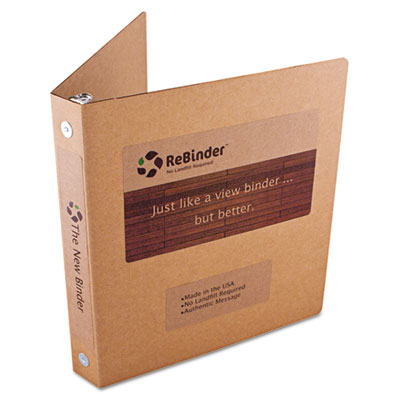 The popular Original Series from ReBinder is made of recycled corrugated cardboard with exposed fluting. It arrives with a blank sheet of brown kraft labels so you can brand the binder with your own message. It's like a view binder, only better. Unlike traditional riveted binders, ReBinders incorporate ring mechanisms that can be unscrewed from the cover for easy recycling and replacement with a new one. Capacity Range [Max]: 1"; Sheet Capacity: 185; Color(s): Brown Kraft.