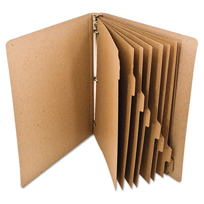 Make page turning between subjects easier. Write directly on the tabs or use labels. Three-hole punched for binders. Signature brown kraft color cover exemplifies your environmental awareness. RePouch®'s large pocket can hold several sheets of paper, a business card, and a CD. Assembled by an Ability One Disabled Workforce. Tab Style: 8-Tab; Tab Color(s): White; Index Divider Size: 11 x 8 1/2.