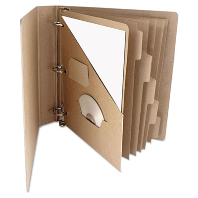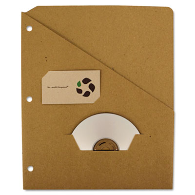 Environmentally friendly, zero waste product -- 100% recycled and recyclable. Single slash pocket expands to hold up to 30 sheets or even a magazine. 18-pt. brown kraft chipboard construction with die-cut business card and CD slots. Three-hole punched for use in ReBinder™ ring binders. Front Cover Color(s): Brown Kraft; Back Cover Color(s): Brown Kraft; Sheet Size: 11 x 8 1/2.