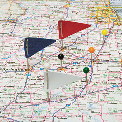 High-quality triangular flags mark information on maps. 1" x 5/8" flag. Head diameter: 3/16". Head Material: Plastic; Head Diameter: 3/16"; Pin Material: Steel.