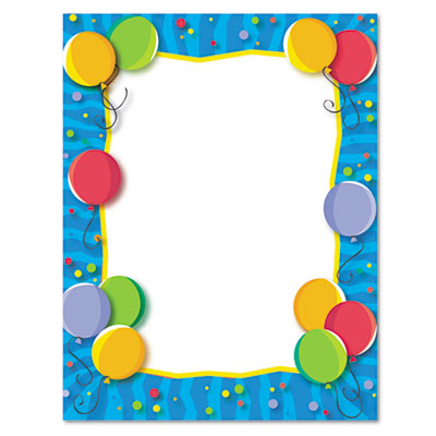 Express your creativity! Create announcements, flyers and invitations. Bond paper is laser and inkjet compatible, acid and lignin free. Size: 8 1/2 x 11; Paper Color(s): White;Balloons; Paper Weight: 24 lb..