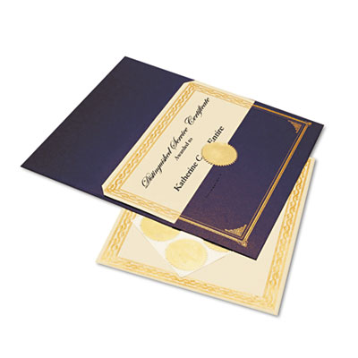 Create recognition of achievements. Kit makes putting awards together easy. Includes six gold foil-stamped metallic finish document covers, six 8 1/2 x 11 certificates with parchment finish and 6 gold excellence embossed seals. Use with inkjet or laser printers, copiers, quick printing, typewriters and calligraphy. Compatible with all major software programs. Theme: Serpentine; Shape: Rectangular; Width: 8 1/2 ".