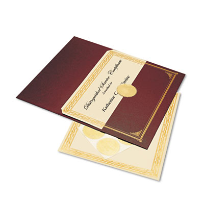 Create recognition of achievements. Kit makes putting awards together easy. Includes six gold foil-stamped metallic finish document covers, six 8 1/2 x 11 certificates with parchment finish and 6 gold excellence embossed seals. Use with inkjet or laser printers, copiers, quick printing, typewriters and calligraphy. Compatible with all major software programs. Theme: Serpentine; Shape: Rectangular; Width: 8 1/2 ".