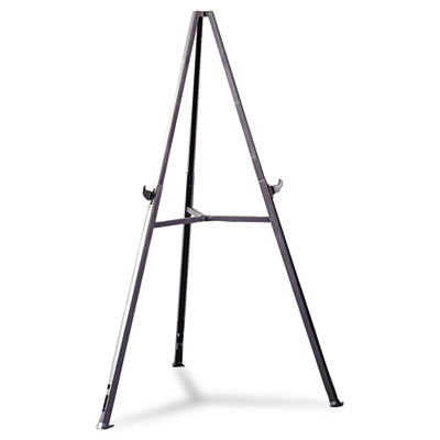 Great value in a display easel—holds up to 25 lbs. but weighs just 3 lbs. Ideal for displaying presentations, artwork, posters and small boards. Patented design allows for easy height adjustment from full-size to tabletop. Features retractable legs, permanently-positioned board holders and non-marring feet. Inverted leg design adds strength. No knobs or hardware—ready to go right out of the box! Durable ABS resin construction. Easel Type: Folding Display; Minimum Easel Height: 36"; Maximum Easel Height: 62".