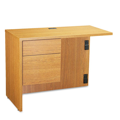 Attractive, understated style that blends easily with existing office furnishings. Thermally fused laminate provides strength and durability. Locking drawers keep contents safe. Drawers are dovetailed for extra strength. File drawer is mounted on full-extension steel ball bearing slides for smooth drawer operation; holds letter or legal size files. Desk and Return sold and shipped separately—ORDER BOTH. Color: Oak; Pedestal Count: 1; Drawer Configuration: Left: Box/File.