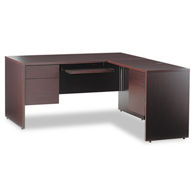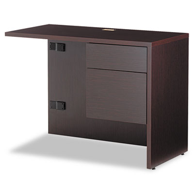 Attractive, understated style that blends easily with existing office furnishings. Thermally fused laminate provides strength and durability. Locking drawers keep contents safe. Drawers are dovetailed for extra strength. File drawer is mounted on full-extension steel ball bearing slides for smooth drawer operation; holds letter or legal size files. Desk and Return sold and shipped separately—ORDER BOTH. Color: Dark Espresso; Pedestal Count: 1; Drawer Configuration: Right: Box/File.