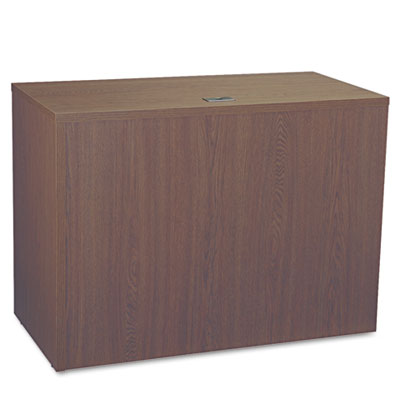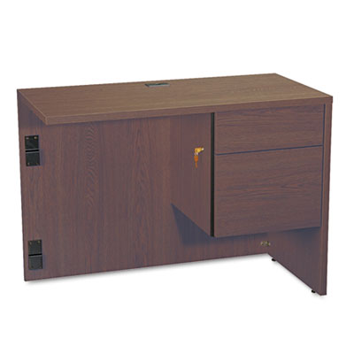 Attractive, understated style that blends easily with existing office furnishings. Thermally fused laminate provides strength and durability. Locking drawers keep contents safe. Drawers are dovetailed for extra strength. File drawer is mounted on full-extension steel ball bearing slides for smooth drawer operation; holds letter or legal size files. Desk and Return sold and shipped separately—ORDER BOTH. Color: Mahogany; Pedestal Count: 1; Drawer Configuration: Right: Box/File.