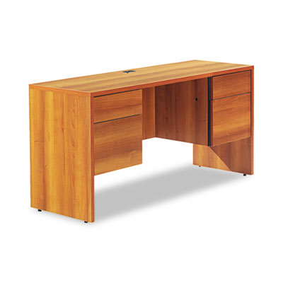 Attractive, understated style blends easily with existing office furnishings. Thermally-fused, high-performance laminate for durability. Locking drawers are dovetailed for added strength. File drawers are mounted on full-extension steel ball bearing slides for smooth drawer operation; hold letter or legal size files. Box drawers are mounted on 3/4-extension steel ball bearing slides. Modesty panel adds privacy. Color: Avant Honey; Pedestal Count: 2; Drawer Configuration: Left: Box/File; Right: Box/File.