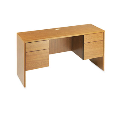 Attractive, understated style blends easily with existing office furnishings. Thermally-fused, high-performance laminate for durability. Locking drawers are dovetailed for added strength. File drawers are mounted on full-extension steel ball bearing slides for smooth drawer operation; hold letter or legal size files. Box drawers are mounted on 3/4-extension steel ball bearing slides. Modesty panel adds privacy. Color: Oak; Pedestal Count: 2; Drawer Configuration: Left: Box/File; Right: Box/File.