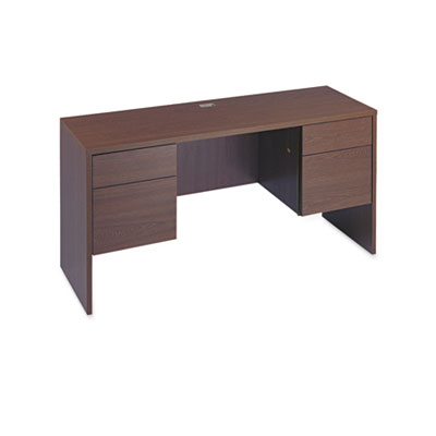 Attractive, understated style blends easily with existing office furnishings. Thermally-fused, high-performance laminate for durability. Locking drawers are dovetailed for added strength. File drawers are mounted on full-extension steel ball bearing slides for smooth drawer operation; hold letter or legal size files. Box drawers are mounted on 3/4-extension steel ball bearing slides. Modesty panel adds privacy. Color: Mahogany; Pedestal Count: 2; Drawer Configuration: Left: Box/File; Right: Box/File.