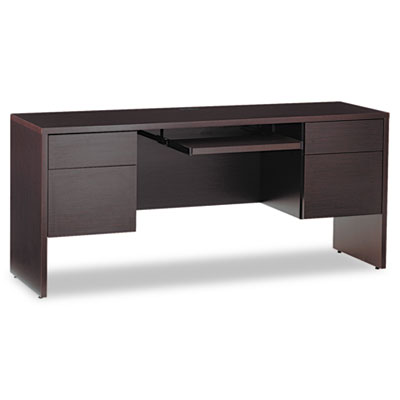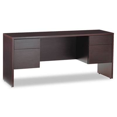 Attractive, understated style blends easily with existing office furnishings. Thermally-fused, high-performance laminate for durability. Locking drawers are dovetailed for added strength. File drawers are mounted on full-extension steel ball bearing slides for smooth drawer operation; hold letter or legal size files. Box drawers are mounted on 3/4-extension steel ball bearing slides. Modesty panel adds privacy. Color: Dark Espresso; Pedestal Count: 2; Drawer Configuration: Left: Box/File; Right: Box/File.