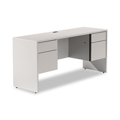 Attractive, understated style blends easily with existing office furnishings. Thermally-fused, high-performance laminate for durability. Locking drawers are dovetailed for added strength. File drawers are mounted on full-extension steel ball bearing slides for smooth drawer operation; hold letter or legal size files. Box drawers are mounted on 3/4-extension steel ball bearing slides. Modesty panel adds privacy. Color: Gray; Pedestal Count: 2; Drawer Configuration: Left: Box/File; Right: Box/File.