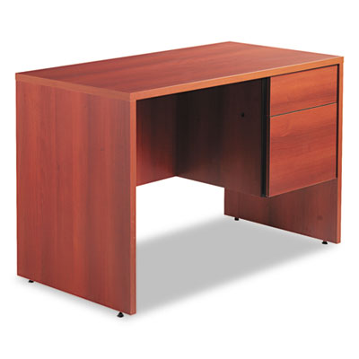 Attractive, understated style that blends easily with existing office furnishings. Thermally fused laminate provides strength and durability. Locking drawers operate on fully progressive ball bearing suspension. File drawer extends fully and holds letter or legal size files; box drawer extends three-quarters. Recessed three-quarter height modesty panel for privacy. Leveling glides help compensate for uneven floors. Color: Avant Cherry; Pedestal Count: 1; Top Shape: Rectangular.