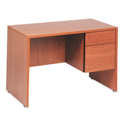Attractive, understated style that blends easily with existing office furnishings. Thermally fused laminate provides strength and durability. Locking drawers operate on fully progressive ball bearing suspension. File drawer extends fully and holds letter or legal size files; box drawer extends three-quarters. Recessed three-quarter height modesty panel for privacy. Leveling glides help compensate for uneven floors. Color: Oak; Pedestal Count: 1; Top Shape: Rectangular.