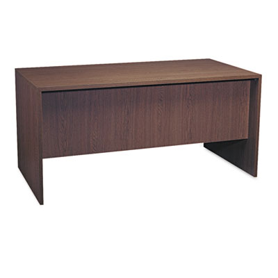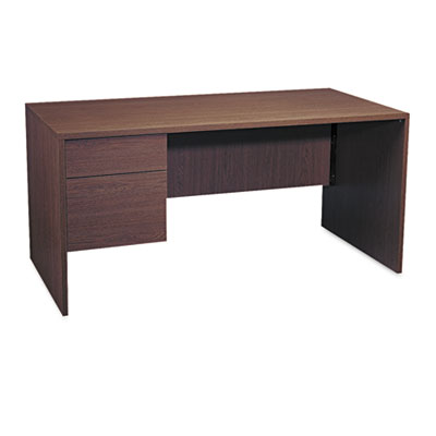 Attractive, understated style that blends easily with existing office furnishings. Thermally fused laminate provides strength and durability. Locking drawers keep contents safe. Drawers are dovetailed for extra strength. File drawer is mounted on full-extension steel ball bearing slides for smooth drawer operation; holds letter or legal size files. Desk and Return sold and shipped separately—ORDER BOTH. Color: Mahogany; Pedestal Count: 1; Top Shape: Rectangular.