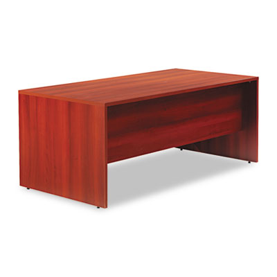 Attractive, understated style that blends easily with existing office furnishings. Thermally fused laminate provides strength and durability. Locking drawers operate on fully progressive ball bearing suspension. File drawers extend fully and hold letter or legal size files; box drawers extend three-quarters. Recessed three-quarter height modesty panel for privacy. Leveling glides help compensate for uneven floors. Color: Avant Cherry; Pedestal Count: 2; Top Shape: Rectangular.