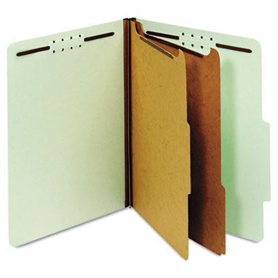 Conquer paperwork by dividing files into sections. 2" capacity fasteners embedded inside the front and back of the sturdy 25 pt. pressboard covers hold documents securely. 1" capacity fasteners on Kraft dividers help further sort files. Durable TyvekŪ gussets stand up to frequent use. Classification Folder Type: Nonexpanding/Same; Size: Letter; Number of Sections: 6.