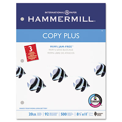 HAM105031 Copy Plus Copy Paper, 3-Hole Punch, 92 Brightness, 20lb, Ltr, White, 500 Shts/Rm By HAMMERMILL/HP EVERYDAY PAPERS