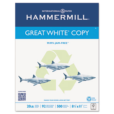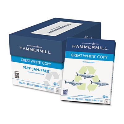 HAM86700 Great White Recycled Copy Paper, 92 Brightness, 20lb, 8-1/2 x 11, 5000 Shts/Ctn By HAMMERMILL/HP EVERYDAY PAPERS