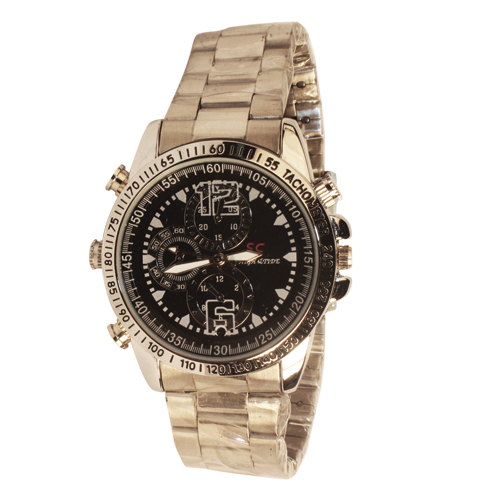 Our Watch Hidden Camera is a state of the art body worn complete surveillance system. This wire-free wristwatch contains the latest in miniaturized video technology. We've squeezed a color camera, microphone, power source, and a 4 GB Digital Video Recorder (DVR) inside a stylish silver watch. The watch is also fully functional.