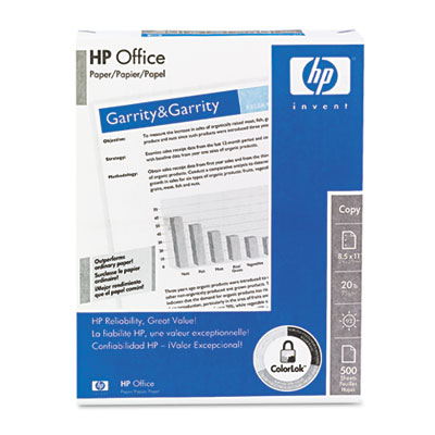 Enjoy HP's world-famous reliability at a great value. The ideal all-around-the-office paper. It's suitable for copies, drafts, memos and other everyday business documents. Engineered to run jam-free. ColorLok™ technlogy for smear resistance, bolder blacks and brighter colors. Works well in copiers, fax machines, inkjet printers and laser printers. Acid-free for archival quality. Size: 8 1/2 x 11; Paper Color(s): White; Paper Weight: 20 lbs..