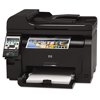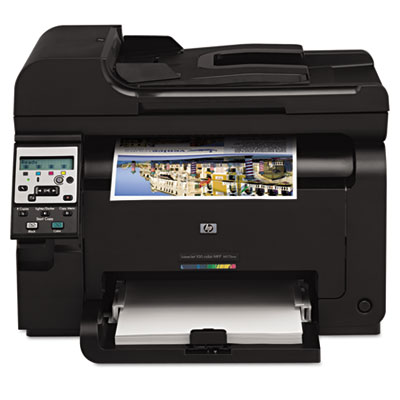 Produce brilliant color projects, improve the quality of copied images and even print black text affordably with this compact wireless multifunction printer that features a high print resolution. HP ePrint app makes it easy to send and print documents from any mobile device. HP Auto-Off Technology provides energy savings up to 50%, plus Instant-on Technology and Instant-on Copy can help reduce energy use. Installation takes just minutes, so you can start printing and sharing wirelessly sooner. Small footprint makes the most of your valuable workspace. Print Technology: Laser; Maximum Print Speed (Black): 17 ppm; Maximum Print Speed (Color): 4 ppm.