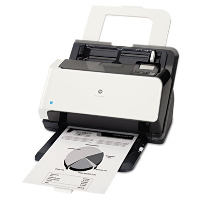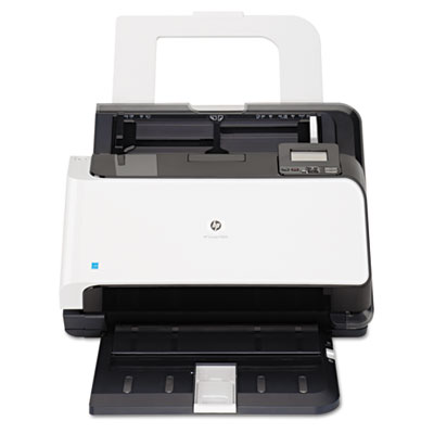 Turn piles of paper into organized digital files with this sophisticated enterprise scanner. Fast, two-sided scanning helps you boost productivity and improve workflows. Attend to other work while you're scanning, thanks to the convenient automatic document feeder. HP Precision Feed technology automatically adjusts feeding if the scanner fails to pick up a page and notifies you if it senses it picked up too many, ensuring that your documents will be scanned correctly. Scan a range of media types, including ledgers, receipts, checks, hard plastic insurance and identification cards, and business cards. Four-line LCD control panel and quick-start buttons make it easy to launch scans. Scan Size (W x H): 11 4/5" x 34"; Bit Depth of Color: 48-bit.
