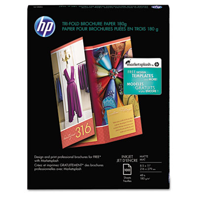HEWQ5443A Inkjet Tri-Fold Brochure Paper, 103 Brightness, 48lb, 8-1/2 x 11, White, 100/PK By HEWLETT PACKARD COMPANY