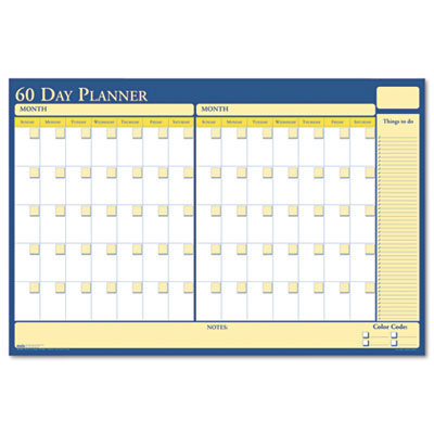 Versatile, reversible planner promotes looking ahead. One side designed for detailed, short-range planning. The other has more days for long-range planning. Large undated blocks offer planning flexibility. Extra space at bottom for additional scheduling and notes. Write-on/wipe-off surfaces erase with a damp cloth. Use over and over. Unframed. Includes water soluble marker and hanger. Board Type: Magnetic;Planner; Board Width: 36"; Board Height: 24".