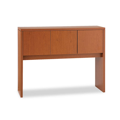 Keep your clutter behind closed doors! Durable woodgrain laminate is scratch-, stain- and spill-resistant for years of trouble-free performance. Clean, straight edges deliver a streamlined look. Enclosed storage behind self-closing, adjustable hinged doors. Valance and wire access facilitate optional task lighting. Color: Henna Cherry; Overall Width: 48"; Overall Depth: 14 5/8".