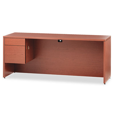 Hard-working, good-looking and built to survive a lifetime of overtime. Durable laminate surfaces are scratch-, stain- and moisture-resistant. Clean, square edges for a streamlined look. File drawers extend fully and box drawers extend three-quarters on steel ball bearing suspensions. High drawer sides accommodate hanging files. Full-height modesty panel. HONŽ "One Key" core removable lock make re-keying quick and easy. Color: Henna Cherry; Pedestal Count: 1; Drawer Configuration: Left: Box/File.