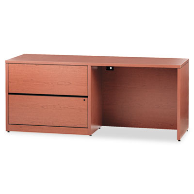 Hard-working, good-looking and built to survive a lifetime of overtime. Durable laminate surfaces are scratch-, stain- and moisture-resistant. Clean, square edges for a streamlined look. File drawers extend fully and box drawers extend three-quarters on steel ball bearing suspensions. High drawer sides accommodate hanging files. Full-height modesty panel. HONŽ "One Key" core removable lock make re-keying quick and easy. Color: Henna Cherry; Pedestal Count: 1; Drawer Configuration: Left: Lateral File.