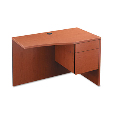 Hard-working, good-looking and built to survive a lifetime of overtime. Durable abrasion- and stain- resistant laminate. Grommet on worksurface for cable management. Full-height modesty panel for privacy. For use with Curved Corner Workstation only. Not freestanding. Color: Henna Cherry; Pedestal Count: 1; Drawer Configuration: Right: Box/File.