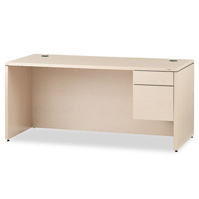 Hard-working, good-looking and built to survive a lifetime of overtime. Durable abrasion- and stain- resistant laminate. Drawers operate on ball bearing suspensions; file drawer extends fully and accommodates letter or legal size hanging files, box drawer extends three-quarters. HONŽ "One Key" core removable locks make re-keying quick and easy. Full-height modesty panel for privacy. Desk and Return sold and shipped separately--ORDER BOTH. Color: Natural Maple; Pedestal Count: 1; Top Shape: Rectangular.