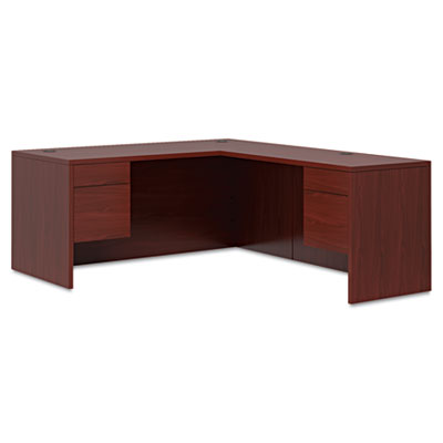 Hard-working, good-looking and built to survive a lifetime of overtime. Durable abrasion- and stain- resistant laminate. Drawers operate on ball bearing suspensions; file drawer extends fully and accommodates letter or legal size hanging files, box drawer extends three-quarters. HONŽ "One Key" core removable locks make re-keying quick and easy. Full-height modesty panel for privacy. Desk and Return sold and shipped separately--ORDER BOTH. Color: Mahogany; Pedestal Count: 1; Top Shape: Rectangular.