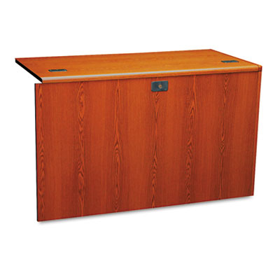 A modular management solution that combines stylish profiles and elegant accents with top-grade fit and finish. Abrasion- and stain-resistant high-pressure laminate with elegant hardwood trim. Grommets on worksurface for cable management. Full-extension file and 3/4-extension box drawers ride on steel ball bearing suspensions. Drawers lock to secure contents. Desk and Return sold and shipped separately—ORDER BOTH. Color: Henna Cherry; Pedestal Count: 1; Drawer Configuration: Box/File.