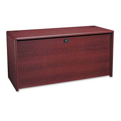 A modular management solution that combines stylish profiles and elegant accents with top-grade fit and finish. Laminate with rounded corners and waterfall edge. Full-extension file drawers and 3/4-extension box drawers ride on steel ball bearing suspensions. Hang rails accommodate letter and legal size hanging files. Two cord management grommets. HON® “One Key” core removable locks. Color: Mahogany; Pedestal Count: 2; Drawer Configuration: Left: Box/File; Right: Box/File.