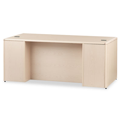 A modular management solution that combines stylish profiles and elegant accents with top-grade fit and finish. Abrasion- and stain-resistant high-pressure laminate with elegant hardwood trim. Drawers ride on steel ball bearing suspensions; file drawer extends fully and accommodates letter and legal size hanging files, box drawers extend three-quarters. HONŽ One Key" core removable locks make re-keying quick and easy. 10-1/2" conference overhang provides added kneespace for guests. Full-height modesty panel for privacy. Convenient cable management with two worksurface grommets. Color: Natural Maple; Pedestal Count: 1; Top Shape: Rectangular.