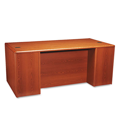 A modular management solution that combines stylish profiles and elegant accents with top-grade fit and finish. Abrasion- and stain-resistant high-pressure laminate with elegant hardwood trim. Drawers ride on steel ball bearing suspensions; file drawer extends fully and accommodates letter and legal size hanging files, box drawers extend three-quarters. HONŽ One Key" core removable locks make re-keying quick and easy. 10-1/2" conference overhang provides added kneespace for guests. Full-height modesty panel for privacy. Convenient cable management with two worksurface grommets. Color: Henna Cherry; Pedestal Count: 1; Top Shape: Rectangular.