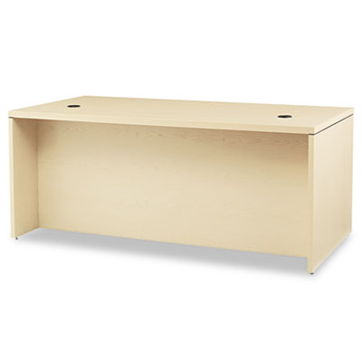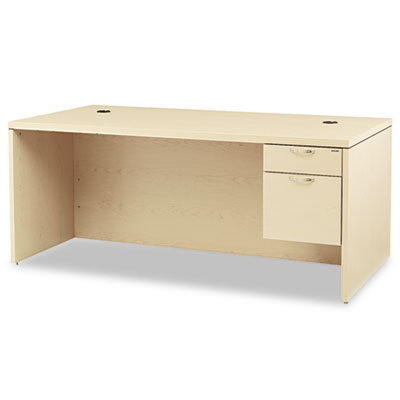 Thick 1 1/2" tops make a decidedly upscale impression. High-pressure laminate top is abrasion- and stain-resistant. Drawers operate on ball bearing suspensions; file drawer extends fully and accommodates letter or legal size hanging files, box drawer extends three-quarters. HONŽ "One Key" core removable lock. Full-height modesty panel for privacy. Two worksurface grommets for easy cable management. Color: Natural Maple; Pedestal Count: 1; Top Shape: Rectangular.