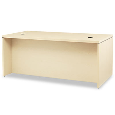 Thick 1 1/2" tops make a decidedly upscale impression. High-pressure laminate top is abrasion- and stain-resistant. Drawers operate on ball bearing suspensions; file drawers extend fully and accommodate letter or legal size hanging files, box drawers extend three-quarters. HONŽ "One Key" core removable lock. 10 1/2" conference overhang provides kneespace for guests. Full-height modesty panel for privacy. Color: Natural Maple; Pedestal Count: 2; Top Shape: Rectangular.