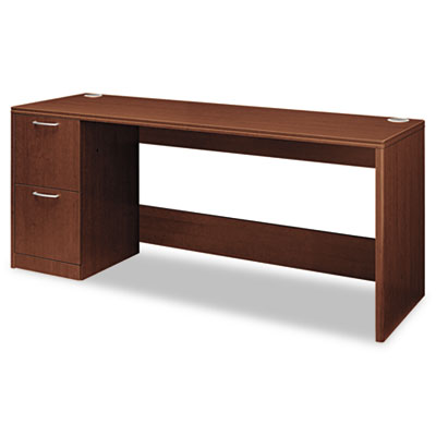 Contemporary designs with enhanced storage solutions and smart technology. Easy-care laminate with vertically-matched woodgrain is abrasion- and stain-resistant. Full-extension file drawers operate on high-quality steel ball bearing suspensions. Open modesty panel permits easy access to power/data wall outlets. Wire grommets for convenient cord management. Color: Shaker Cherry; Pedestal Count: 1; Drawer Configuration: Right: File/File.