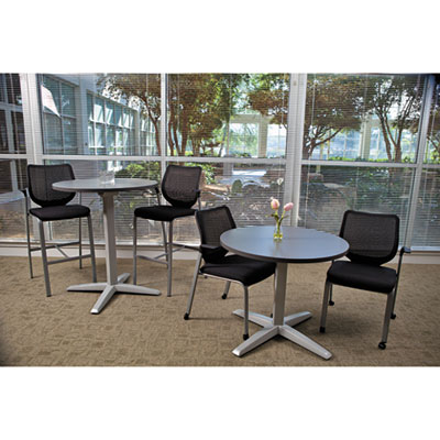 A most uncommon table designed for most common areas. Durable 1-1/8" thick high-pressure laminate resists dents and scratches and is extremely easy to clean. Withstands daily wear-and-tear for exceptionally long life. Matching self-edge for a clean, crisp look. Top and Base sold and shipped separately—ORDER BOTH. Top Color: Charcoal Steel Mesh; Top Shape: Round.