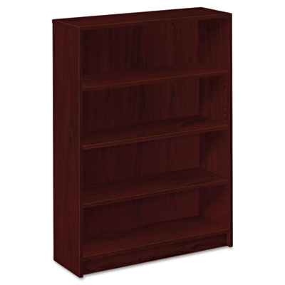 HONŽ 1870 Series square edge laminate bookcase. Color: Mahogany; Material: Laminated; Shelf Count: 4.
