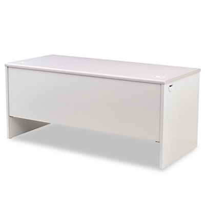 High-pressure laminate top is moisture-, scratch- and stain-resistant. Tru-fit mitered drawers operate on heavy-duty steel ball bearing suspensions. High-sided file drawer extends fully and accepts hanging files without hang rails; box drawer extends three-quarters. HONŽ "One Key" core removable locks. Two worksurface grommets help control cord and wires. Three-quarter height modesty panel for privacy. Use freestanding or combine with Return to create an "L" Workstation. Color: Light Gray; Pedestal Count: 1; Top Shape: Rectangular.