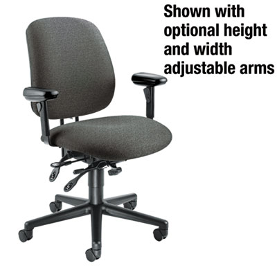 Generously-sized cushions with molded foam in seat provide extra softness and support. Three separate controls allow for: back to seat angle adjustment; tilt (free float or locking); forward tilt. Seat cushion travels independently forward and back, locks into position for optimum comfort for taller or shorter person. Strong molded polymer back for added durability. Upholstery contains stain-resistant protection to maintain a clean appearance. Enclosed inner steel frame with black powder coated finish. Recommended Applications: General Office & Task; Seat/Back Color: Gray; Features & Functions: Asynchronous Control; Back Height Adjustment; Pneumatic Seat Height Adjustment; Seat Glide Mechanism; Tilt Tension/Tilt Lock.