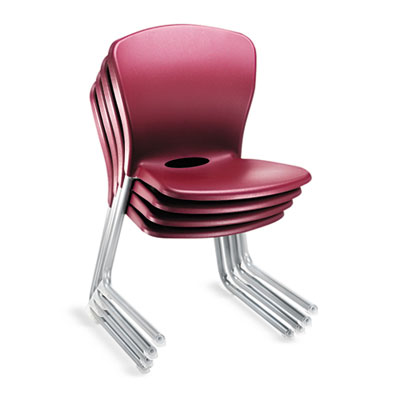 Two hand grips for easy handling. Built-in lumbar helps alleviate back pain. Non-marring glides protect floor. Stacks on desk for easy cleaning. Shipped fully assembled. Recommended Applications: Breakroom & Hospitality; General Office & Task; Seat/Back Color: Garnet.
